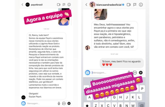 A CH procurou Bianca para conversar sobre o assunto e ela fez questão de relembrar todo o cuidado que teve, junto com a Payot, para criar os produtos. “Falei nas minhas redes sociais diversas vezes que meu maior orgulho sobre essa linha é poder oferecer um produto com muita qualidade para o meu público, com todos os testes possíveis para oferecer o melhor. Estou muito triste com alguns históricos de alergia que foram manifestados, mas com certeza daremos todo o respaldo que precisarem e ninguém ficará sem a nossa total atenção”, disse a Youtuber.