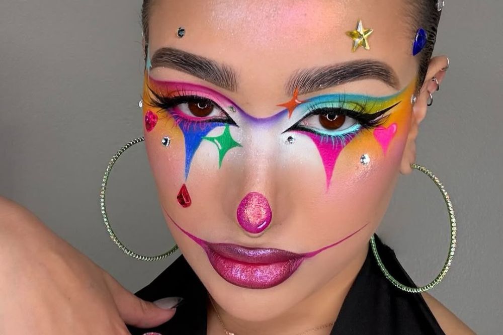 Para um look teatral e, ao mesmo tempo, fashionista, aposte no conceito e nos elementos que caracterizam o palhaço. Sem necessariamente projetar aquela figura assustadora, use cores vibrantes nas pálpebras e pele pálida, com bochechas bem coradas e uma boca marcada. Ah, não se esqueça do delineado nos olhos para dar um toque moderno.