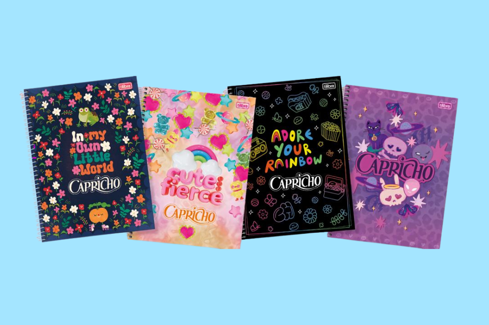E é isso: mais do que itens de papelaria, os cadernos da nova linha carregam um propósito: reforçar que o espaço escolar e os momentos de estudo também podem (e devem!) ser espaços de expressão. “Queríamos criar uma coleção que refletisse o que a CAPRICHO é hoje: uma plataforma jovem, inteligente, conectada com o presente e preocupada com o futuro”, diz a equipe criativa da redação da CH.
