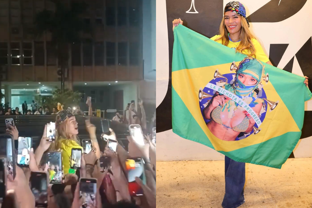 arol G está curtindo alguns momentos especiais com seus fãs no Brasil. A cantora colombiana participou de um encontro com brasileiros na porta do Rosewood Hotel, no bairro da Bela Vista, nesta quinta-feira (05). Por lá, ela cantou single do Tropicoqueta — seu último álbum –, tirou fotos com o público e ainda distribuiu autógrafos.