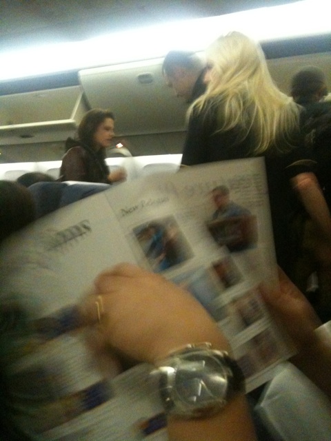 Olha a Kristen dentro do avião! Chegando no Brasil! A foto foi tirada por uma fã antenada, que postou no Plixi .