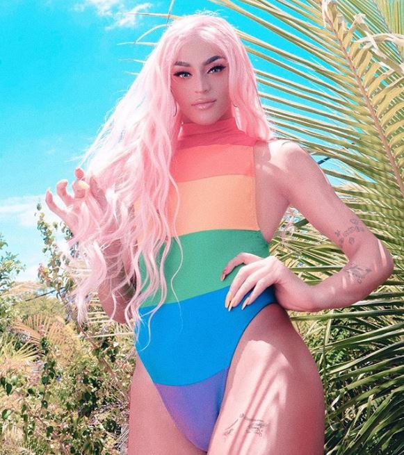 Mais tarde, ela caprichou na ~montação~ e apostou num maiô beeem cavado com as cores da bandeira LGBT.