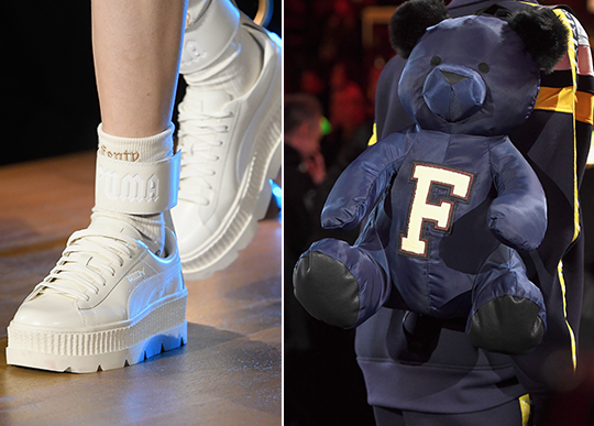 Já que falamos dos acessórios, alguns merecem um zoom! Destacamos uma nova versão dos sneakers brancos com salto plataforma e tratorado e a mochila em formato de ursinho – queremos uma já, Riri!