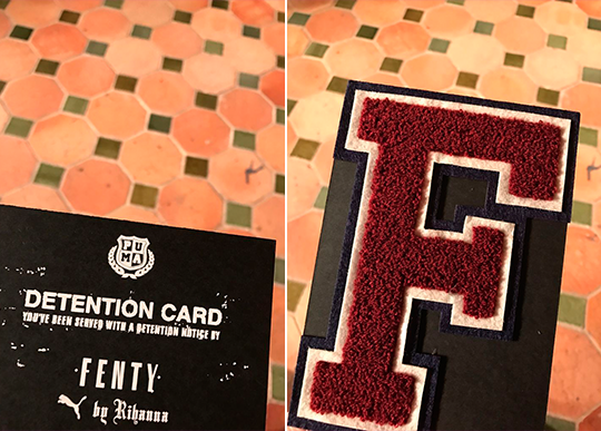 Ontem (6/3), rolou em Paris o desfile da FentyXPuma, a linha da marca esportiva assinada pela diva Rihanna. E estamos apenas amando tudo! Para começar, o convite era um aviso de detenção junto com um patch característico das jaquetas varsity, inspiradas nos uniformes de futebol americano.