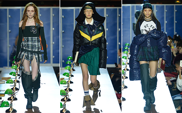 O street e o oversized reinaram absoluto nas peças, que ganharam toques bem college, como brasões e listras nas golas, clássicas do estilo preppy.