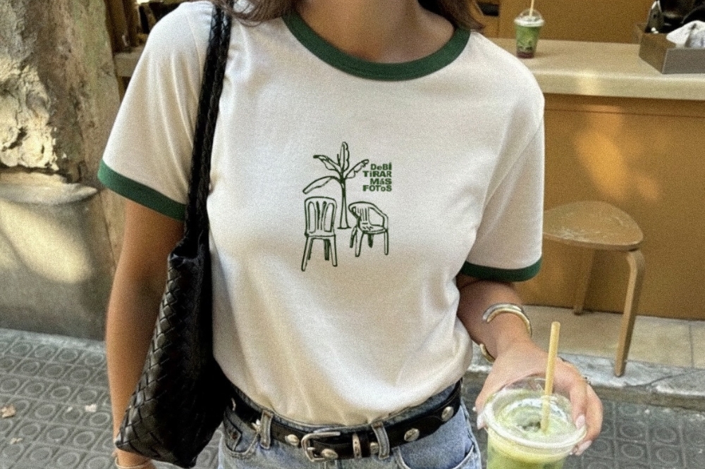A Storm também se apropria das cadeiras de plástico, que aparecem na parte de trás da camiseta estonada, junto com a frase ‘Si te quieres divertir’, da música NUEVAYoL.
