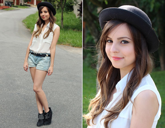 Short: Zara / Chapéu: Pink Vanilla / Cinto: Minha mãe fez / Bota: Schutz / Camisa: Romwe