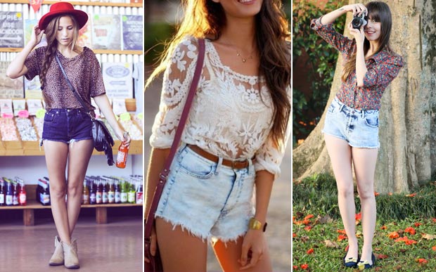 4. Para quem tem quadril largo: para levar a atenção para a parte de cima do corpo, vá em lavagens escuras e peças soltinhas. O legal é usar as blusinhas sempre por fora do short. Se quiser disfarçar ainda mais a região, invista em blazers, casaquinhos ou coletes mais compridinhos pra cobrir o quadril.