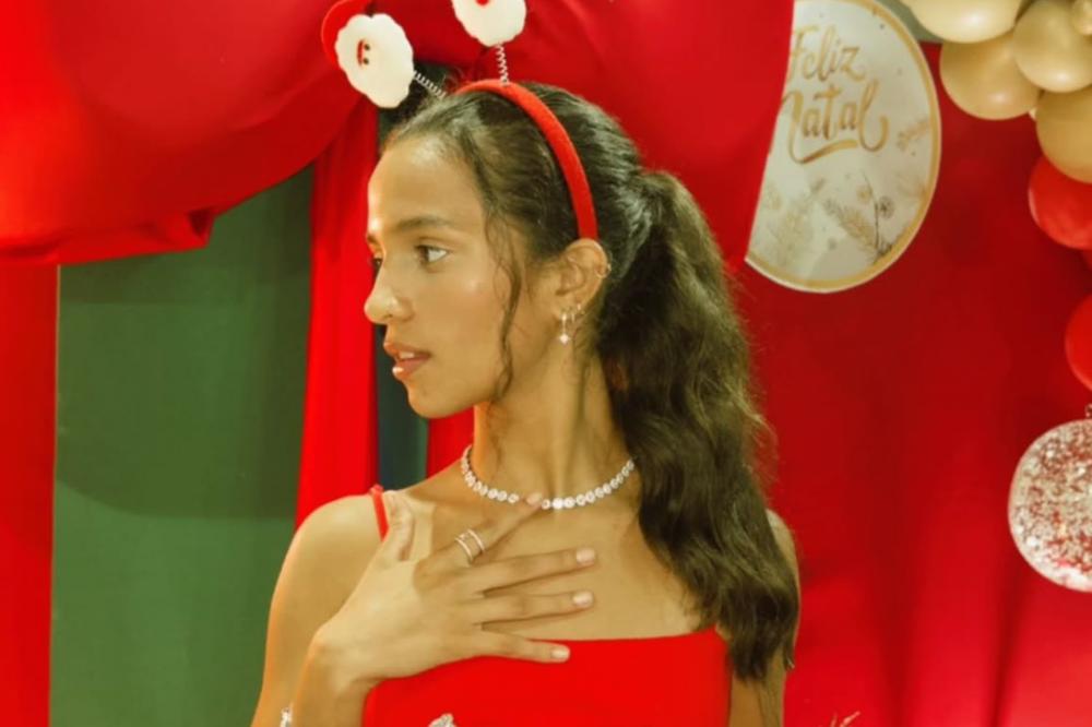 Rayssa Leal aposta em laços e no vermelho clássico para celebrar o Natal