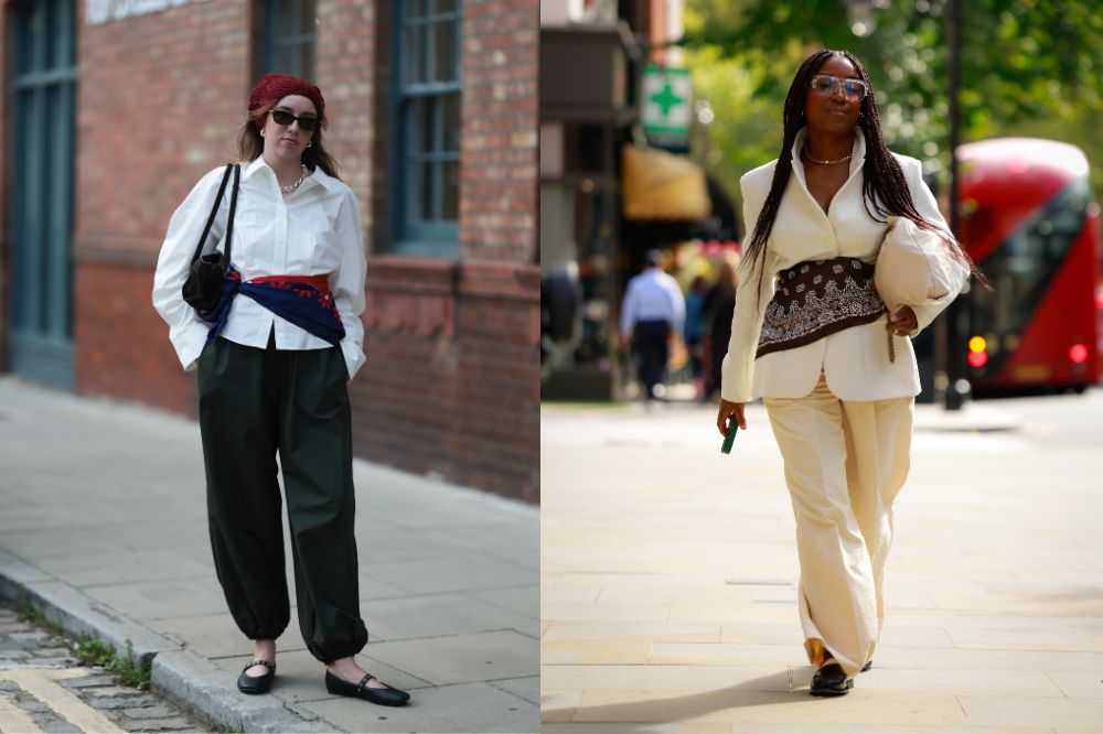 Lenço como cinto: veja como estilizar o truque favorito do street style no momento