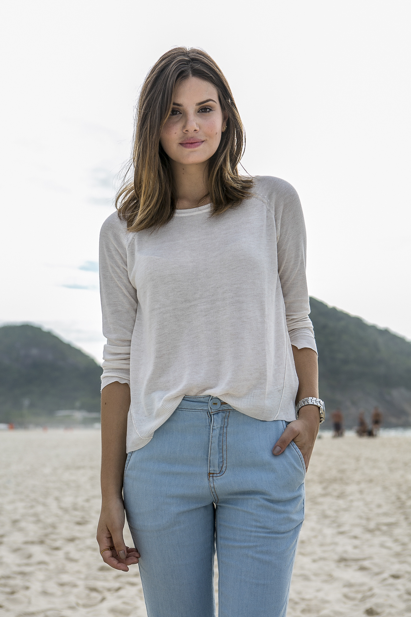 As camisas brancas são as favoritas da personagem. Superclean, funcionam como uma peça curinga: dá pra usar com calça jeans ou colorida. Pode dobrar a barra e combinar com seu tênis favorito que vai ser um sucesso!