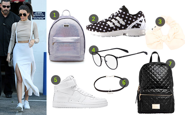 Fashionista como a Kendall Jenner : ligada nas últimas tendências, a top sabe que é o momento certo de investir em um sneaker branco e peças neutras – que se adaptam a vários looks fora da escola também!