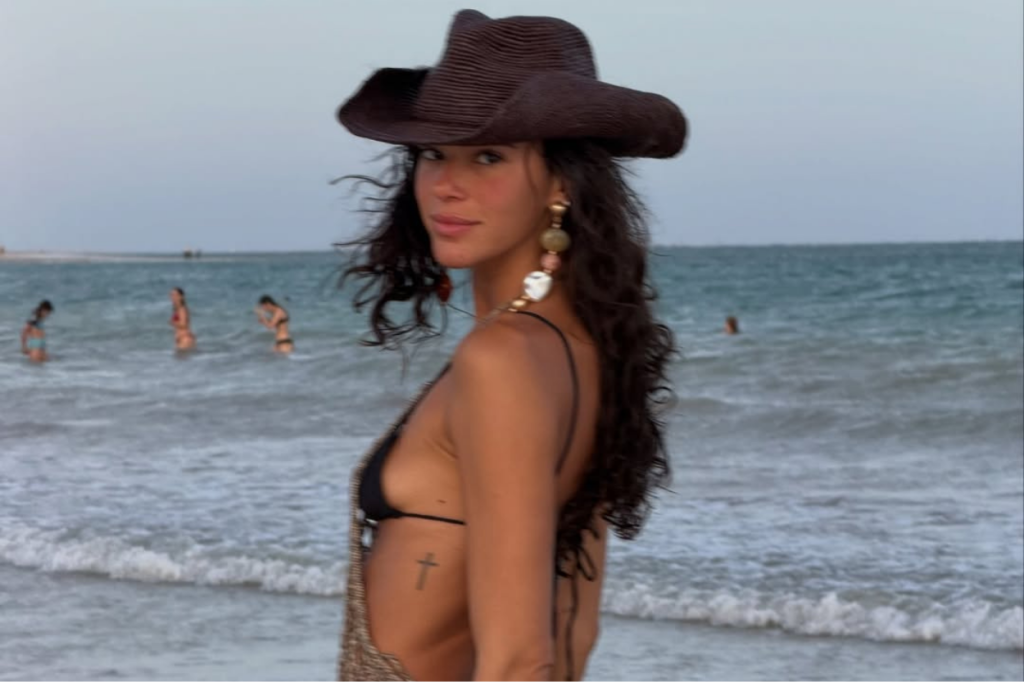 Deciframos os looks de praia da atriz que foram dominados por um chapéu estilo cowboy