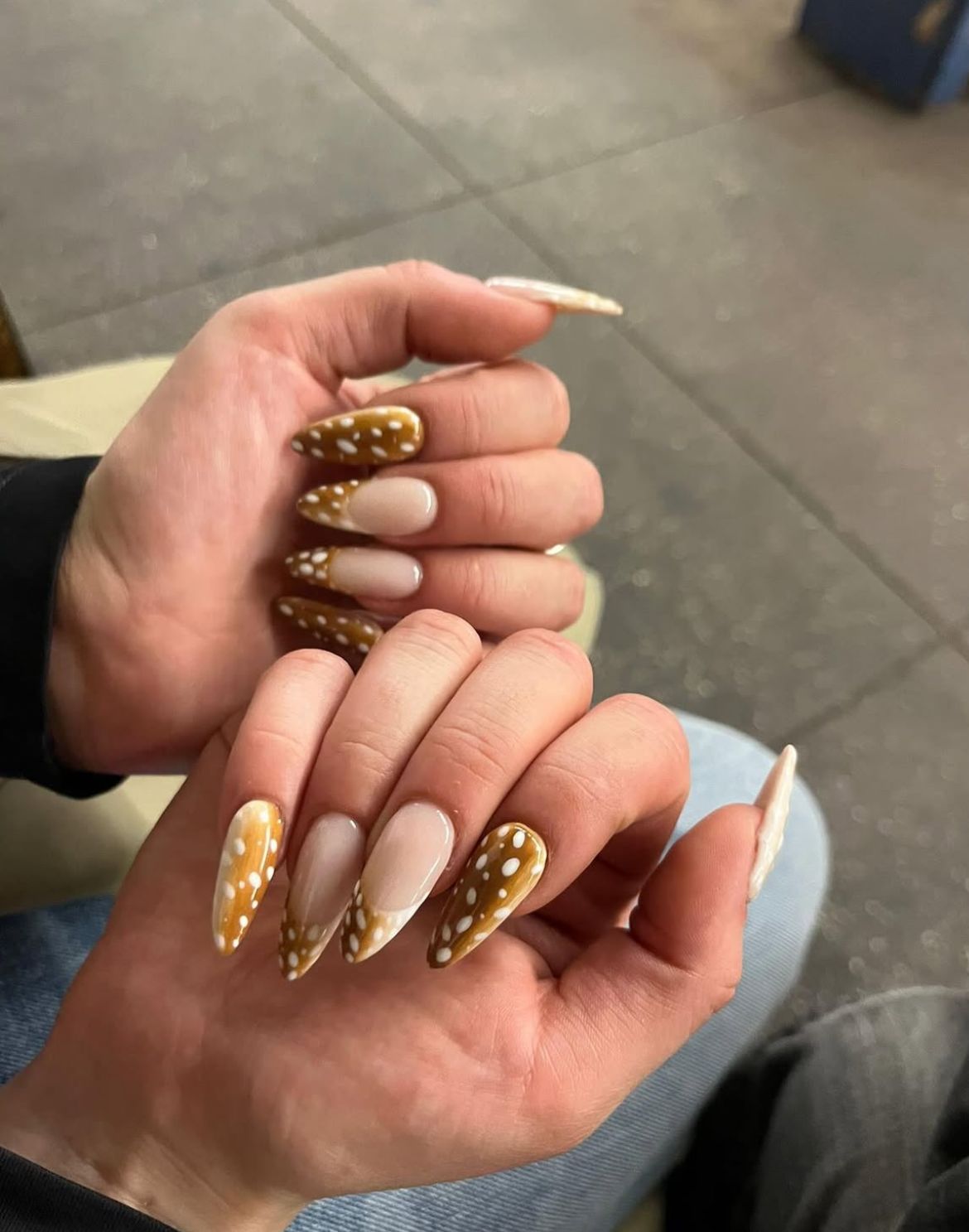 Bambi nails: a estampa do momento Depois de dominar passarelas e looks do street style, a padronagem que imita pele de cervo virou queridinha das unhas.